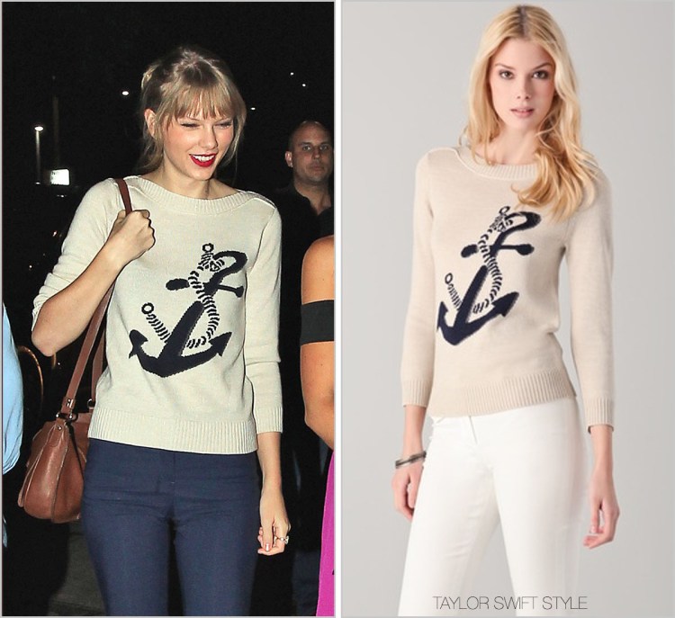 So cute that she decided to match her outfit to her venue. Very nautical, Tay.