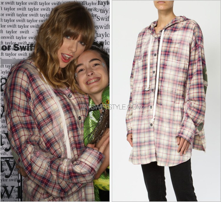 For her pre-show M&G, Taylor turned to a tried-and-true reputation combo of black and camo. I kind of love this unexpected silhouette of a corseted top.