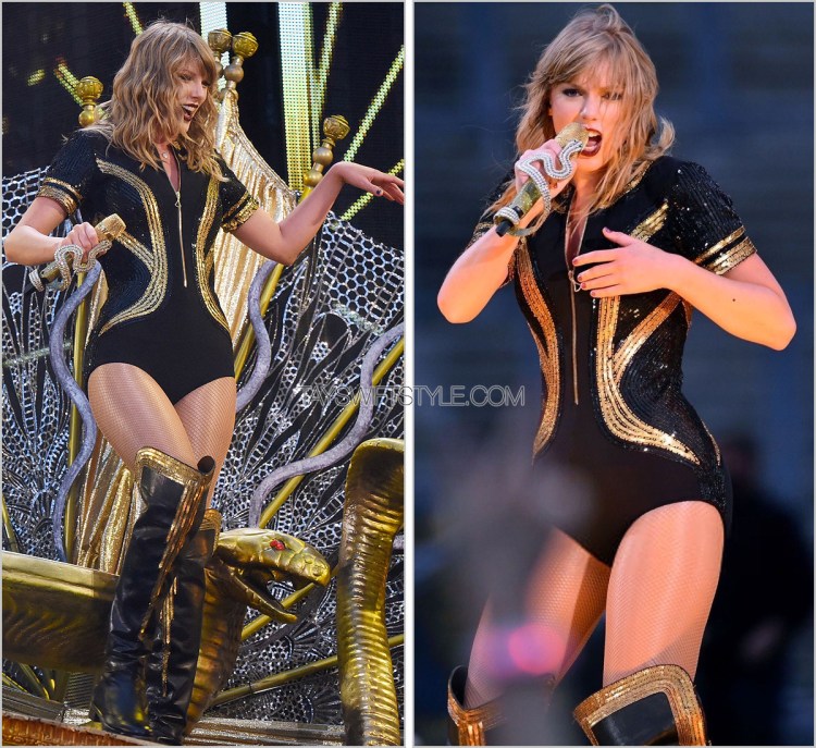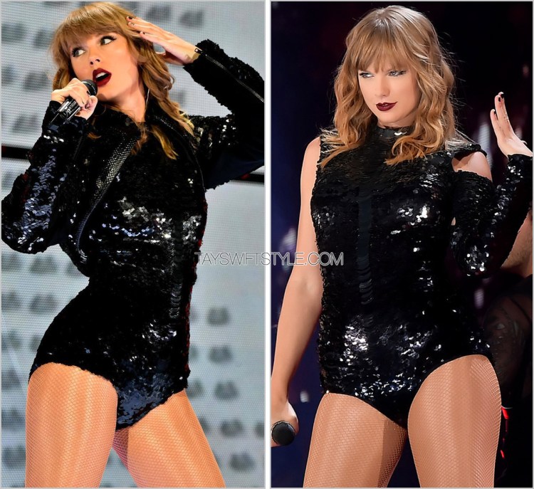 The Reputation Tour kicked off last night! My predictions for this tour squared mainly on black, snake print, and sequins and I think that’s certainly an accurate description of the wardrobe that we got.