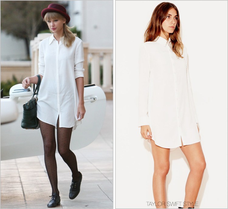 We’ve finally tracked down Taylor’s long shirt dress – quirkily named the ‘Fig’ dress by super cool brand Reformation.