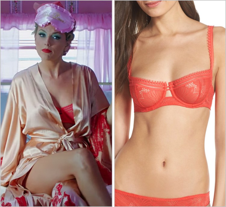 In addition to the patterned bodysuit, while nice to see this cute bra again, I find the colour and strappy details distracting and would have preferred a clean plunge sans bra.