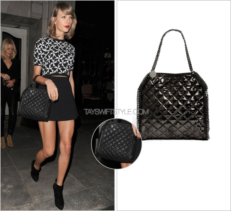 Taylor has also carried a similar chain Stella bag here.