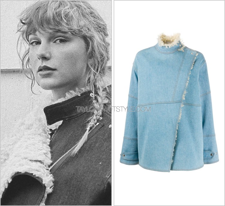 It appears this coat Taylor wore in the Spotify previews for evermore is a combination of a few Stella designs, incorporating beaded detailing from Fall 2020 and buttons from Resort 2020.