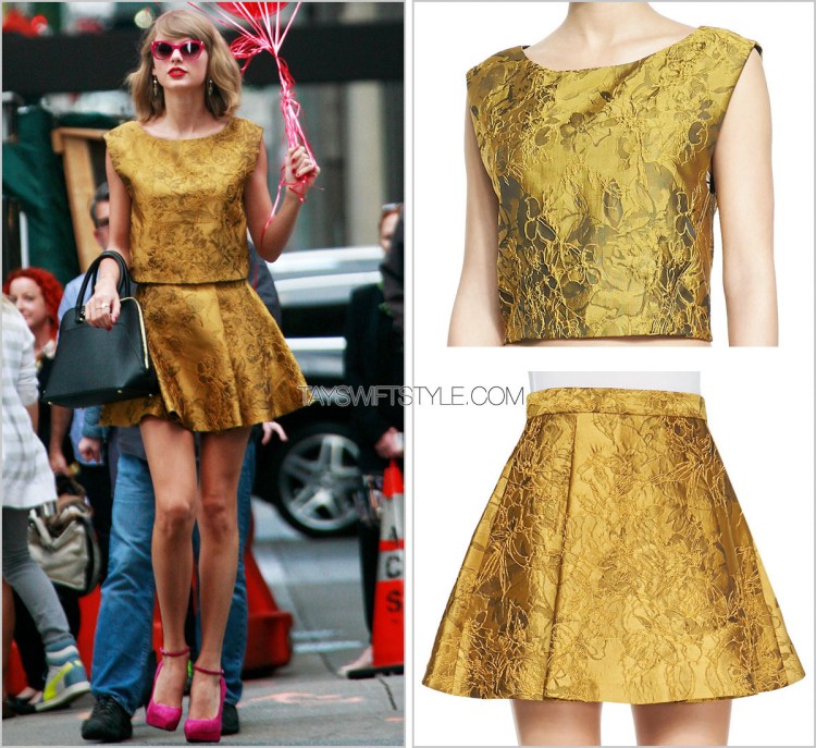For those who often fret over how ‘expensive’ Taylor’s clothes are, check out her über affordable plaid top she wore in this adorable ensemble — under $25, from Target.