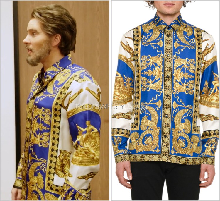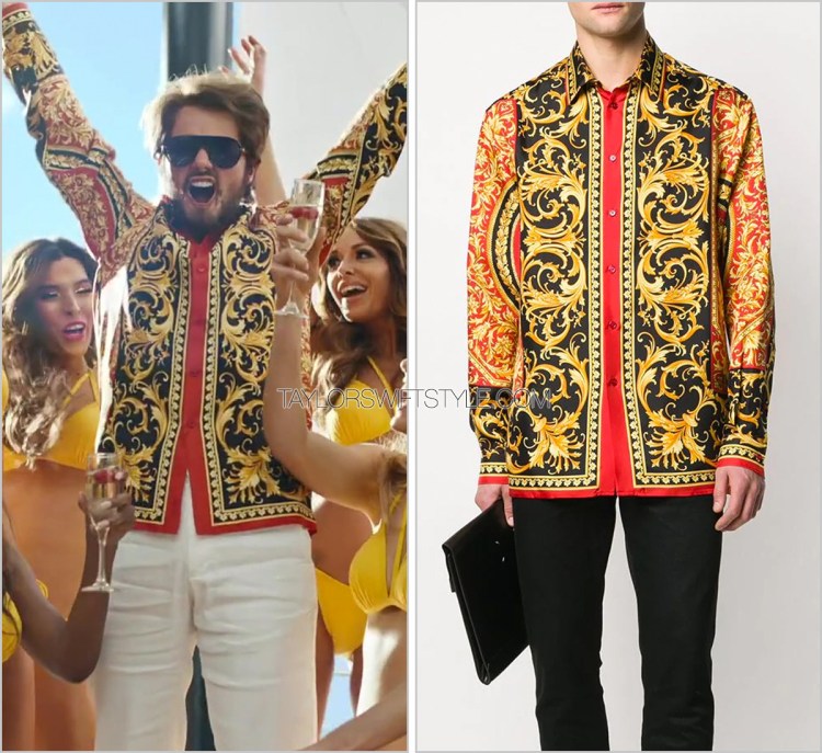 As evidenced in the BTS video, Taylor wears another Versace printed shirt for “The Man” video. Whether this was simply an earlier styled version of her yacht look or a cut scene is not clear.