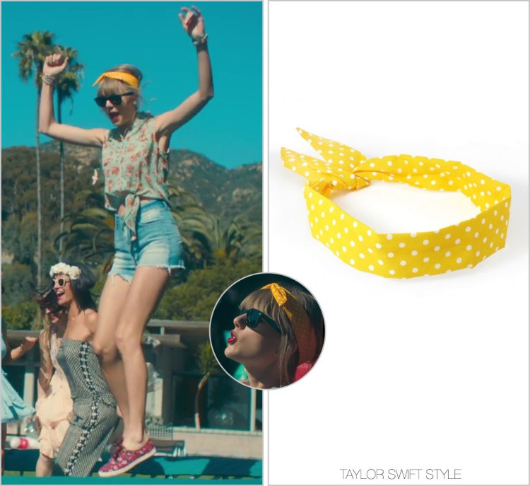 Taylor’s yellow version of this retro spotted headband isn’t available, but you can grab the red version which she has also worn online.