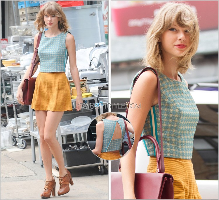 Taylor’s adorable top here featuring a triangular cut out in the back is by Tracy Reese, as confirmed by the brand.