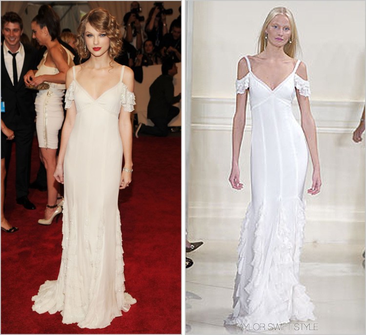 Update (Feb. 15): You can actually purchase an unembellished version of Taylor’s gown via My Theresa here for $8645.