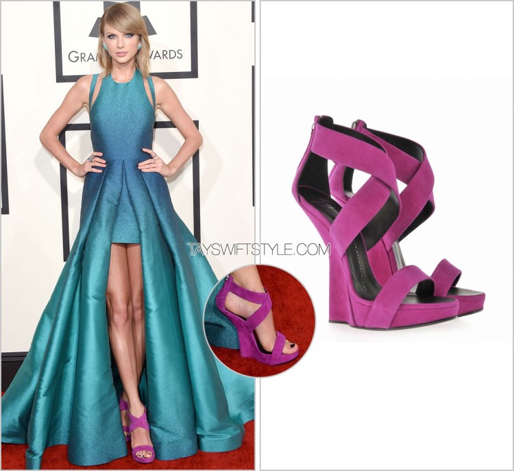 $1160.00$870.00Taylor wore a hot pink pair of Giuseppe Zanotti’s — one of my favoured shoe brands — but took things up a notch by selecting a heel-less pair! Very daring!
