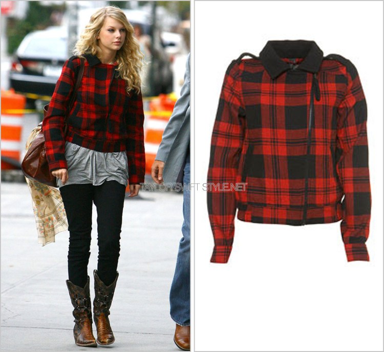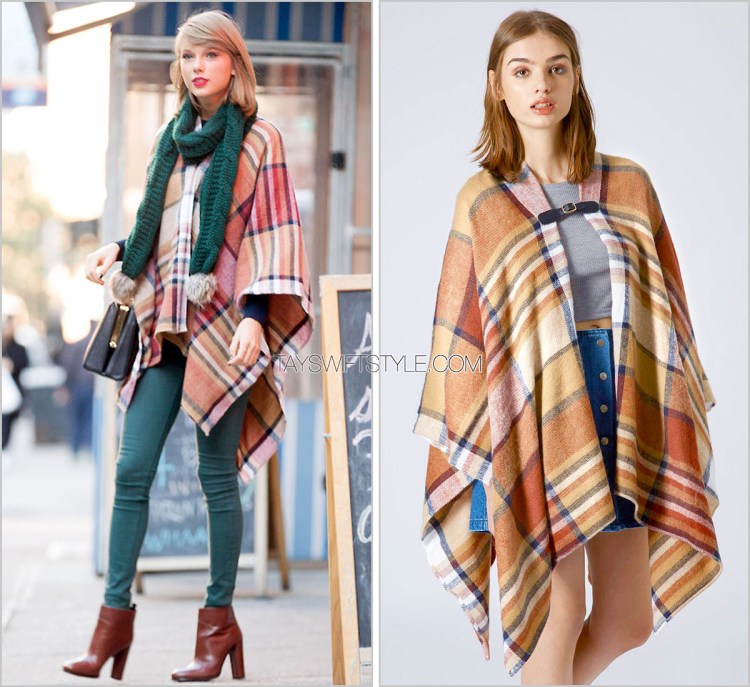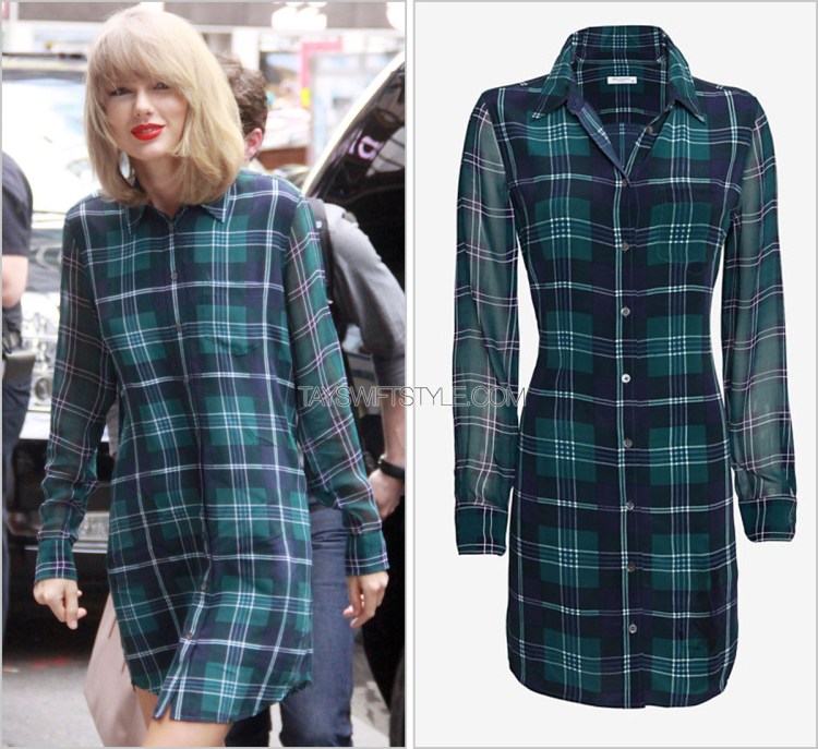 Not wanting to show her cards too soon, Taylor changed out of this loose plaid dress by Equipment into her Lovers + Friends crop top and skirt as she headed towards the Empire State Building for her Yahoo livestream.