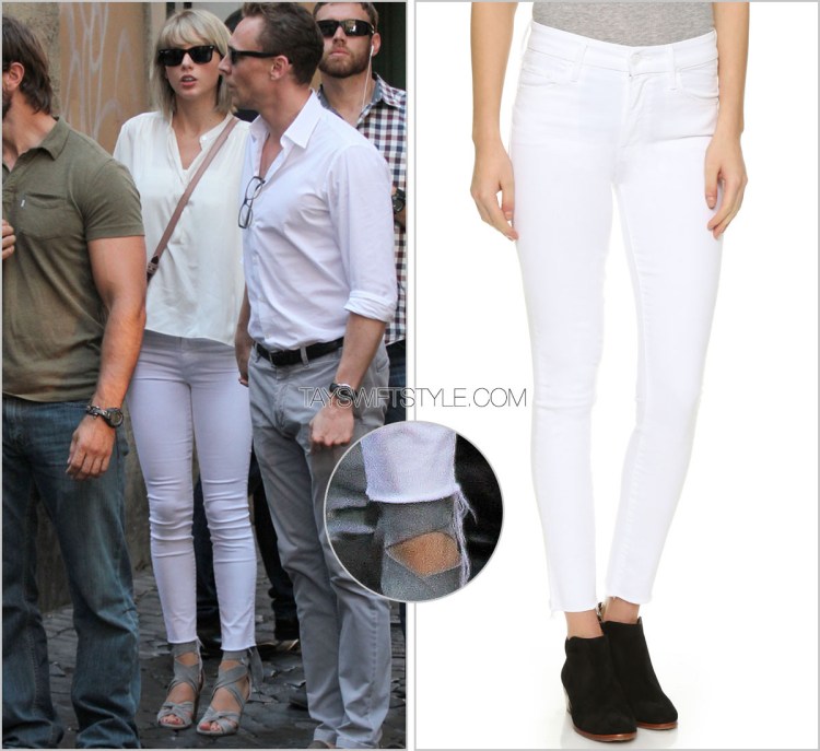 White denim for summer is such a huge trend right now and I love seeing Taylor wear it so well here. Hopefully she remixes these jeans somewhere down the line with a chambray top, hat, and brown heeled sandals.