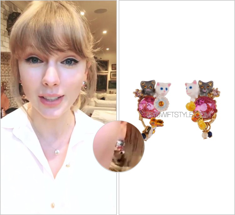 Les Nereides ‘Little Cats Duo w/ Faceted Glass And Charms Earrings’ – $130.99