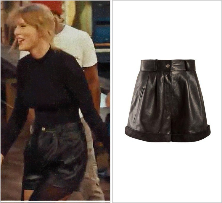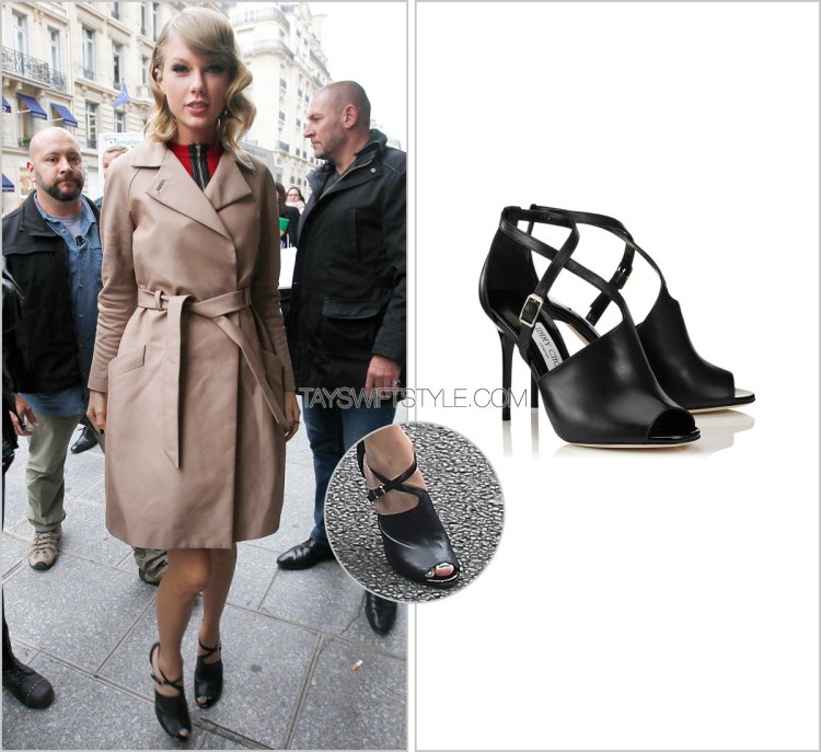 Taylor’s edgy strappy peep toe sandals bring a little bit of an extra edge to her dress featuring a leather central zipper.