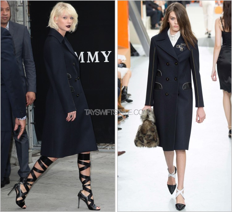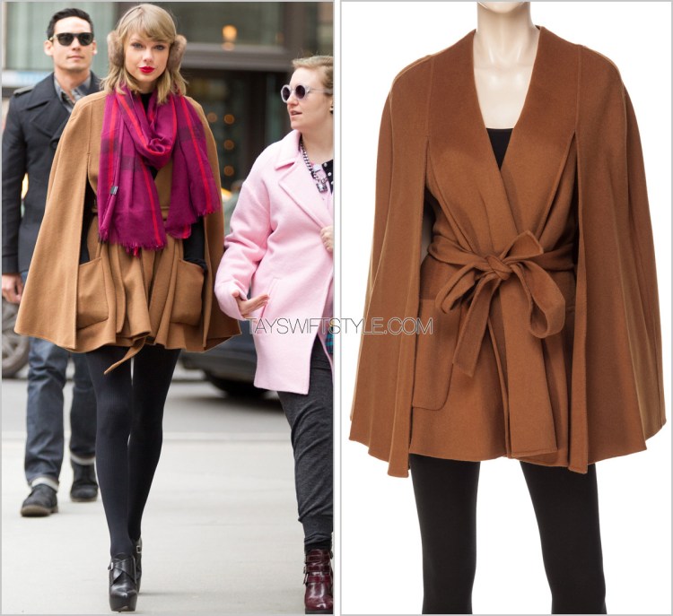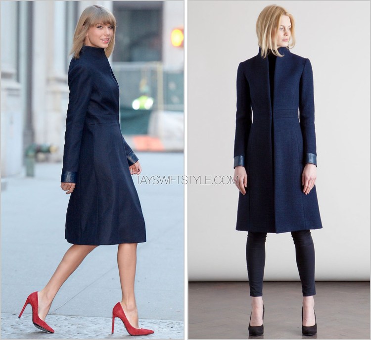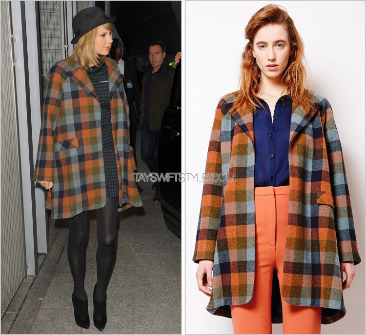 Taylor’s stunningly sophisticated coat is by London-based designer Katherine Hooker who Taylor has turned to on multiple occasions for simple woollen outerwear.
