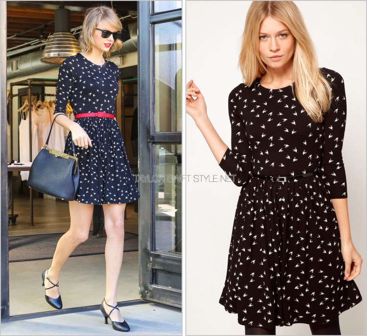 It’s amazing what accessories can do, huh? Taylor breathed new life into this bird-printed black dress from ASOS that she last wore over a year ago while out with Harry Styles.