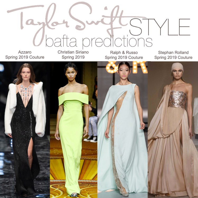 It’s possible that this gown, with its random swath of colour, could be deemed too similar in construction to her similar sherbet coloured J. Mendel gown but … it’s too beautiful to not choose. I feel that Taylor would likely shorten this to a tea length to make it more ladylike and Taylor-loves-vintage vibes. Add on some beautiful butterfly earrings and a coral manicure + glossy coral lip. - Halpern Spring 2019