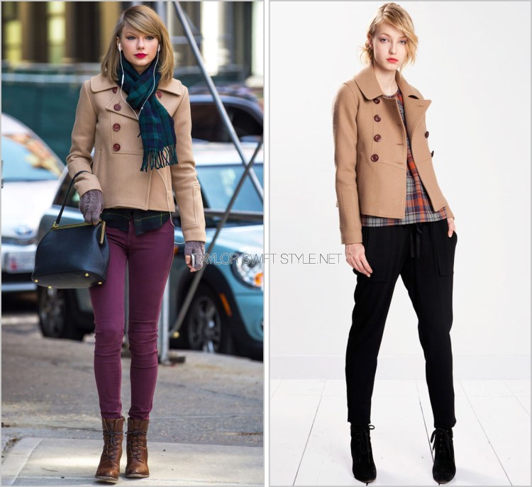 Taylor’s beautiful cropped camel peacoat is from Ulla Johnson’s Fall 2011 collection and is thus unfortunately unavailable for purchase. But how chic does Taylor look in it?