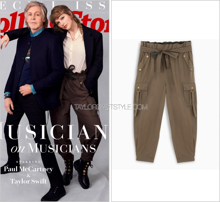 These pants are an unexpected, but jaunty, touch. I do like the paperbag waist trend on pants and both the colour and the fact that they are cargo pants definitely speak back to the reputation era (plus those boots!). If it were me, I may have selected leather pants and more minimal shoes to contrast the boxy/oversized coat.