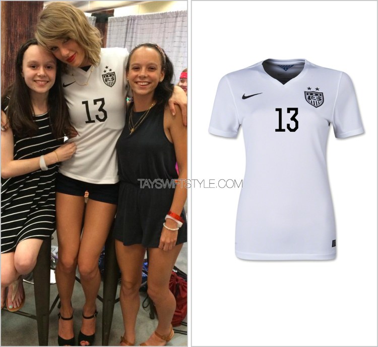 To celebrate bringing the U.S. Women’s National Team out on stage with her at Metlife, Taylor also wore a USWNT jersey emblazoned with her lucky number on the front and last name on the back.