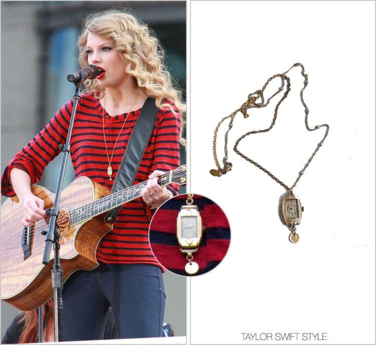 Because Salvage Life is a store that specializes in restoring vintage pieces, everything they make/bring back to life is one of a kind. So unfortunately Taylor’s exact charming watch-turned-pendant necklace is no longer available. They do, however, carry all sorts of other watch necklaces in their store.