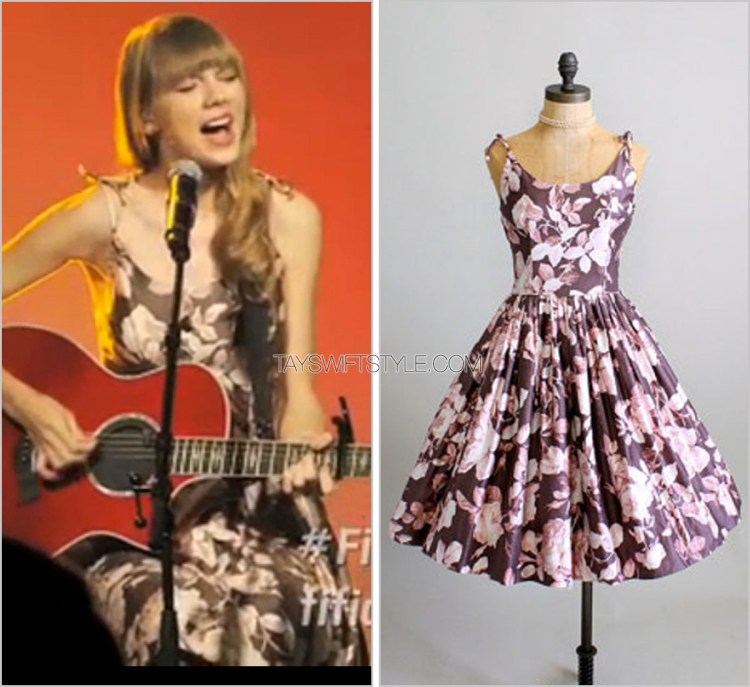 Taylor did an acoustic set of some songs off RED while wearing this vintage dress by Raleigh Vintage.