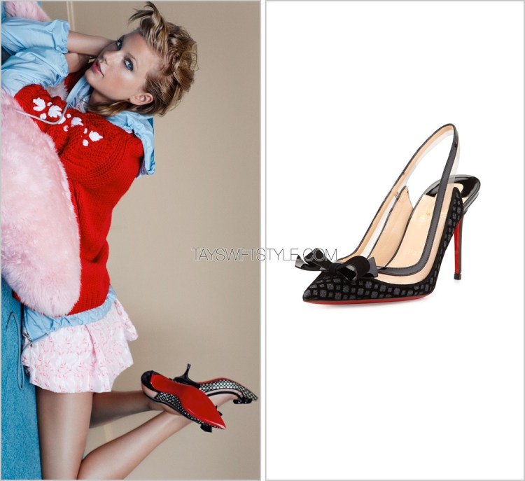 Taylor wore these adorable cut out kitten heels without the ankle strap.