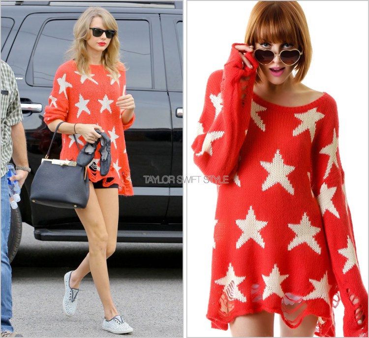 Déja vu! Another day, another workout. This time, Taylor recycles this intentionally-distressed Wildfox Couture star sweater that she first wore exactly one month ago.