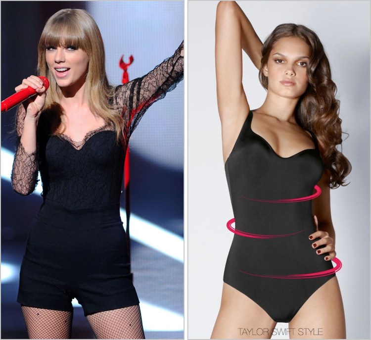 For her performance wear, Taylor pulled out a recycled outfit from her performance at the NRJ Music Awards back in January. A similar Wolford bodysuit was worn underneath this same custom chantilly lace top and her favoured silhouette of high-waisted shorts in a vintage pattern.