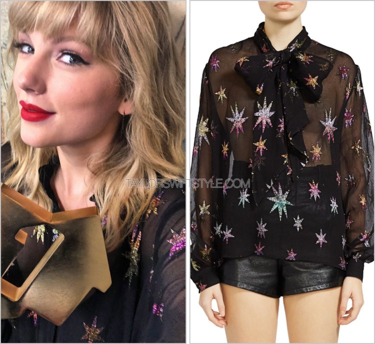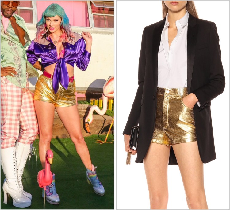 Taylor’s love of Gant’s outerwear continues – this time in an oversized shearling jacket that’s a spin on a classic aviator style and feels very cozy wintery and stands as a nice proportional contrast to her (repeat) Miu Miu skirt we previously saw her wear while on a date with Travis in Argentina when one of her shows was rained out and postponed. Taylor also owns this particular mini in another plaid check print.
